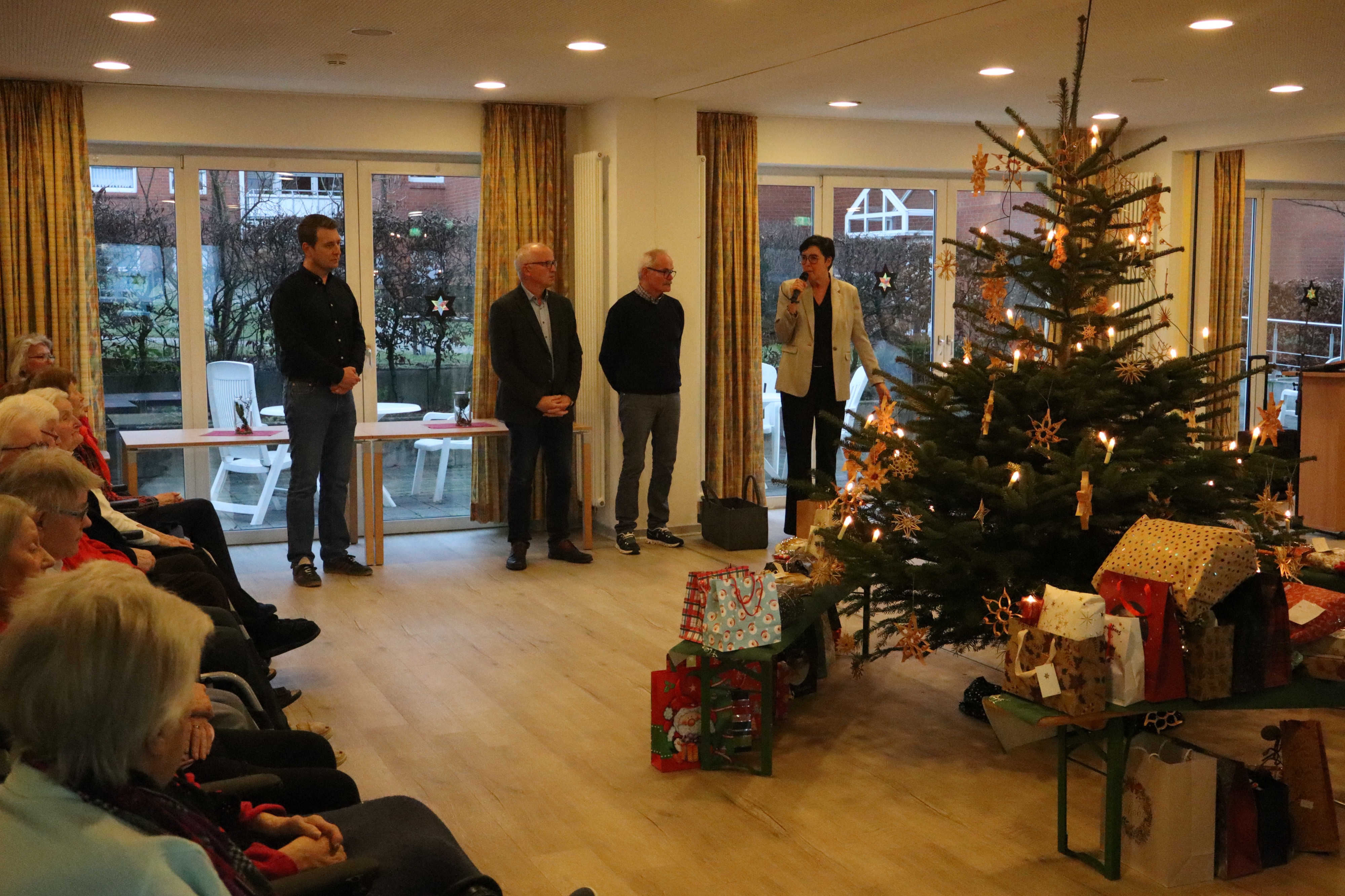 Die Bürgermeisterin Frau Möller wünschte auch allen frohe Weihnachten und verteilte einen süßen Weihnachtsgruß an die Bewohner. Auch äußerte noch Herr Pastor Ellinger Gruß und Segenswünsche der Kirchengemeinde Sankt Martinus.