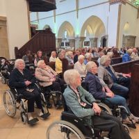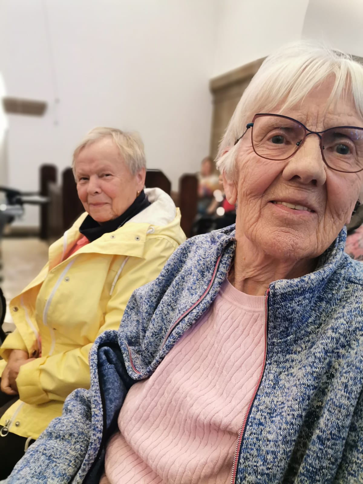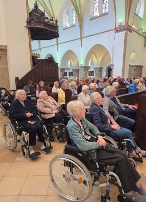 Am vergangenen Samstag folgten die Bewohner vom Haus-Sankt-Joachim der Einladung vom Gellenbecker Chor, kurz GeCho. Erika und Nicole von der sozialen Betreuung machten viel Werbung für diese tolle Aktion und am Ende waren knapp 20 Bewohner mit von der Partie. Zu Fuß, mit Rollstuhl oder Rollator ging es gut gelaunt Richtung Kirche.Wir konnten uns im Vorfeld schon super Plätze reservieren (danke dafür) und so fanden alle ihren Sitzplatz. Der Chor, der einwenig überwältigt war von der hohen Anzahl musikbegeisterter Herdensänger-und Sängerinnen, punktete durch eine bunte Mischung aus Chor-Klassikern, Schlagern, Hits aus den 80ern und sogar das Herzenslied so mancher Bewohner durfte nicht fehlen "Wo ist ein Dorf wie Hagen". Laut und mit Stolz sangen viele dieses für Hagen so tief verwurzelte Lied mit.Alle standen auf und schunkelten.Das war ein wirklicher Gänsehautmoment. Unsere Bewohnerin Agnes hatte ihre helle Freude an "Marmor Stein und Eisen bricht" und sang lauthals mit. Als am Ende gemeinsam "Wir lagen vor Madagaskar" gesungen wurde, war das Gefühl von Freude,Verbundenheit und der Wunsch nach einer Wiederholung in der ganzen Kirche spürbar.Wir danken dem GeCho für diese tolle Idee und die Umsetzung. Generationsübergreifend gemeinsam zu Singen, hat allen solch eine Freude bereitet. Und zu sehen, dass eine Bewohnerin aus vollem Herzen "Westerland" von den Ärzten mitsingt war eines unserer Highlights an diesem Tag.