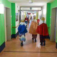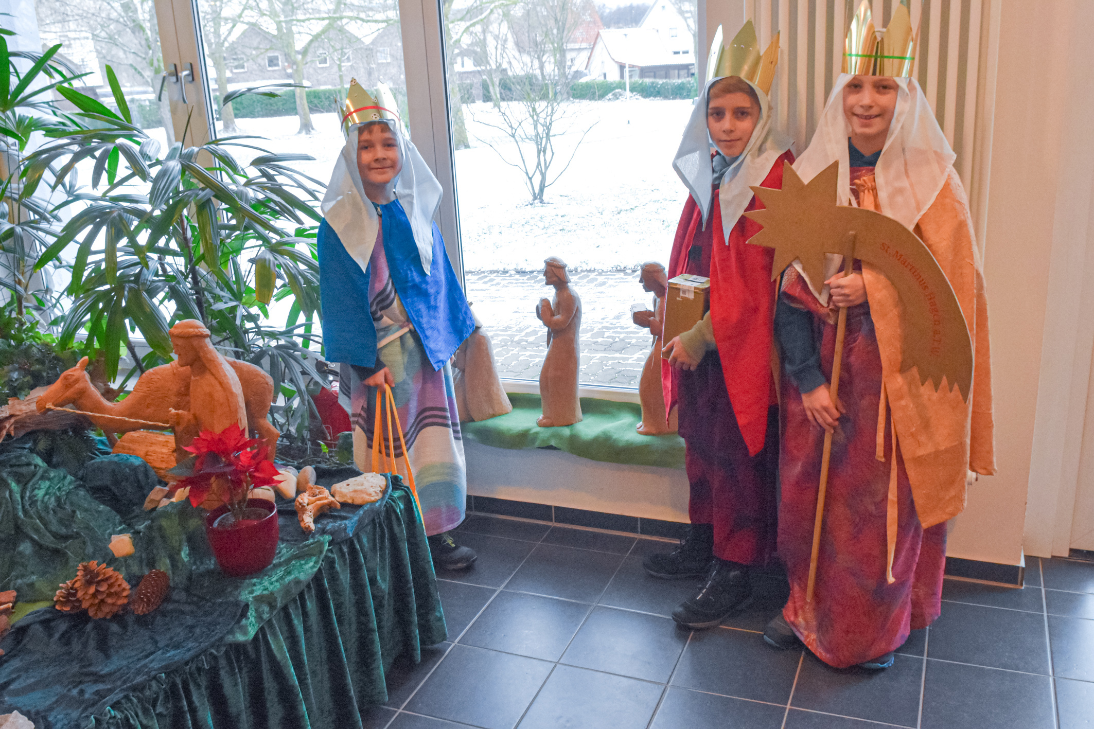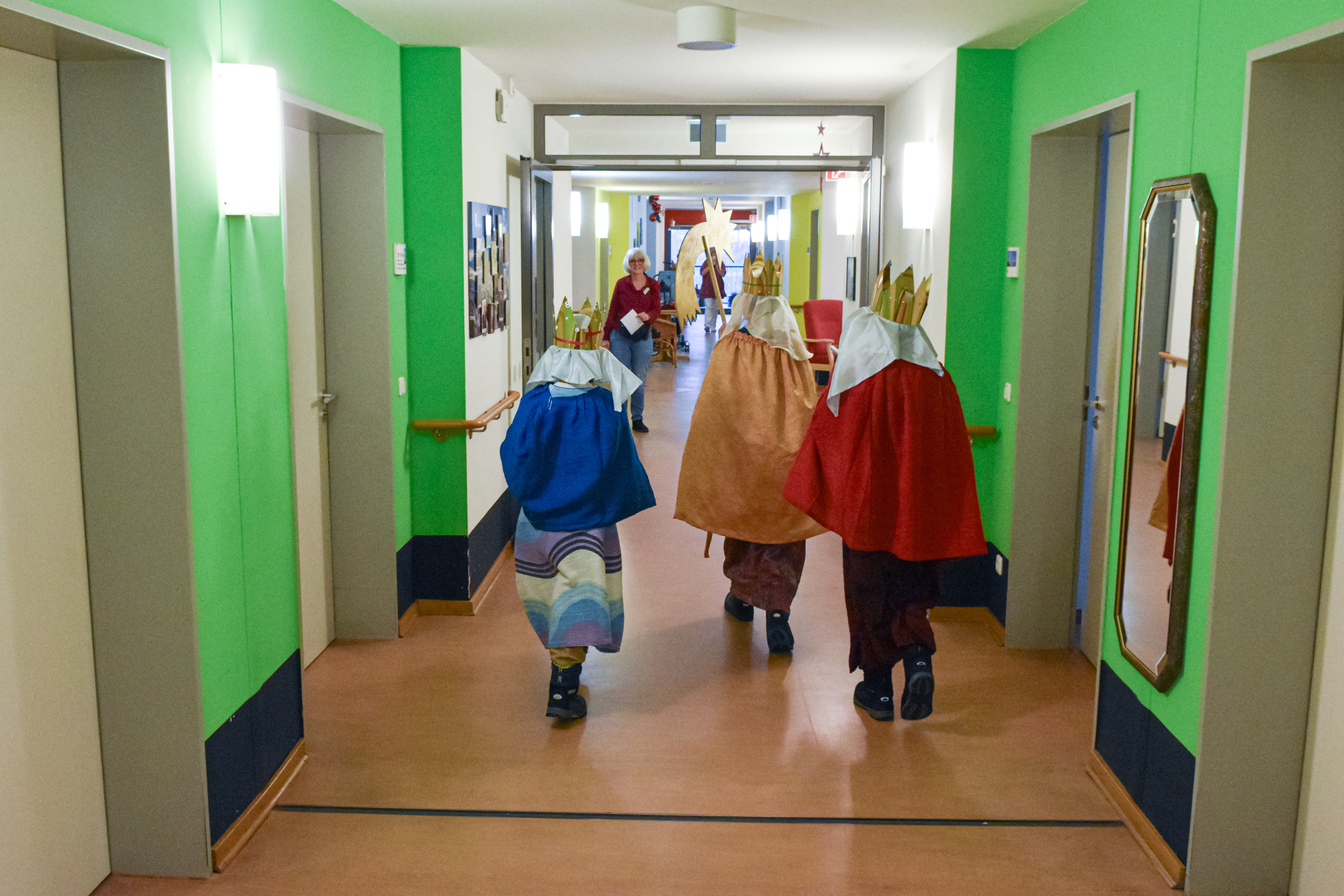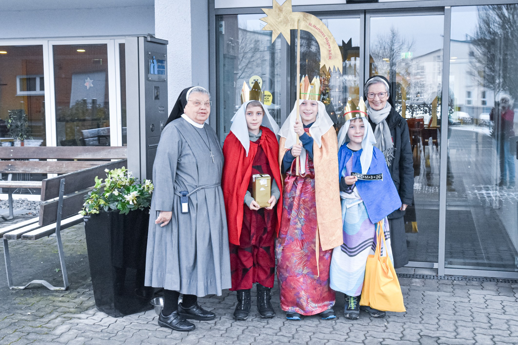 Die Sternsingergruppe – die drei Söhne unseres Einrichtungsleiters – besuchte gemeinsam mit Schwester Johanna Maria alle Bewohnerinnen und Bewohner in den Speiseräumen sowie auf den Zimmern. Mit Liedern und vorgetragenen Gedichtzeilen brachten sie Freude ins Haus, und jeder Wohnbereich erhielt das traditionelle schriftliche Segenszeichen.