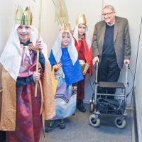 06.01.2026Mit den guten Wünschen der Sternsinger zum neuen Jahr begann das Programm im Anna-Stift. Herr Pastor Friebe ging der Gruppe voraus und stimmte alle Anwesenden auf den Besuch der Heiligen Drei Könige ein.